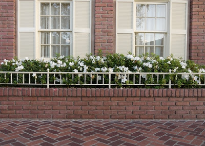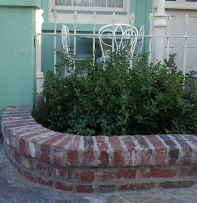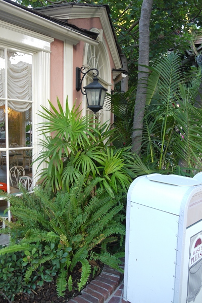 Here's a flowerbed from the middle of the New Orleans Street, this one with an added touch of gentility due to a trim white metal rail around the perimeter. This in particular very much looks forward to the sort of work WED Enterprises would do with Liberty Square in Magic Kingdom: