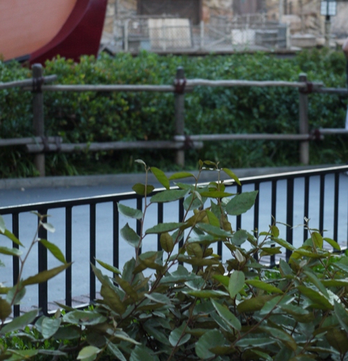 This is the point where Main Street hits Tomorrowland head-on, around the side of the Plaza Inn. Now: not a single Disney theme park is without awkwardness at the Main Street - Tomorrowland junction, so I'm not picking here, but what we have here is seriously a blank wall with some trees in front of it. But what kind of jerk looks at blank walls anyway?