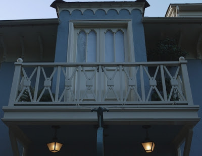 From New Orleans Square, the Terrace harmonizes perfectly with Dixieland Jazz and gas lamps. Notice how only the side directly facing the square makes extensive use of wrought iron: