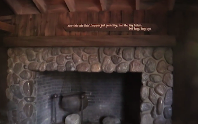 At Disneyland, the journey through Splash Mountain begins in an old barn, pointedly one of the few structures explicitly built for the interaction of humans and animals. From there, the queue moves past a fireplace with a cast iron pot, and is routed so guests must walk across the hearth. This represents the fireplace where Remus tells Johnny the Br'er Rabbit tales in the film, and to make the connection clear, a direct Remus quote from the film is painted on the wall above the fireplace. Although Remus is never referenced or seen in the attraction, to the familiar observer, the signposts and connections to Song of the South are many.